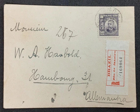 Envelope Registrado Porteado com 500 réis - Isolado Alegoria - Enviado para Alemanha (1911).
