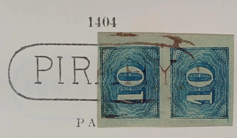 Numeral 10 réis colorido - Par carimbo PIRAHY